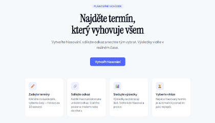 Najděte termín, který vyhovuje všem. Vytvořte hlasování, sdílejte odkaz a nechte tým vybrat. Výsledky vidíte v reálném čase.